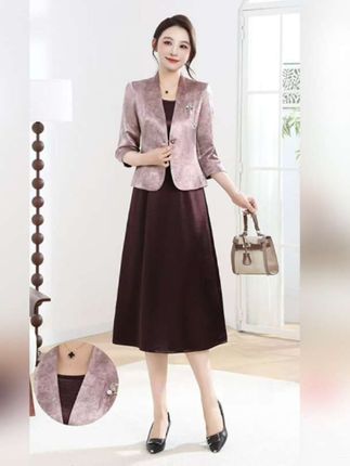 高档时尚大码连衣裙女2025夏季新款妈妈装气质宽松显瘦假两件 这是一套中老年女士穿搭,上衣是带有金色花纹、V领短袖的,下装是黑色雪纺材质的长裙,整体风格端庄大方,适合正式场合或日常休闲,能展现成熟女性的优雅气质 ,不过图中实际是上衣搭配半身裙的套装,并非连衣裙,若看作整体造型,是经典的“假两件”式裙装设计思路,通过上下装搭配营造连贯视觉效果。#中老年穿搭 #大码女装120斤到220斤 #加肥加大码女装 #洋气减龄 #遮肚子藏肉